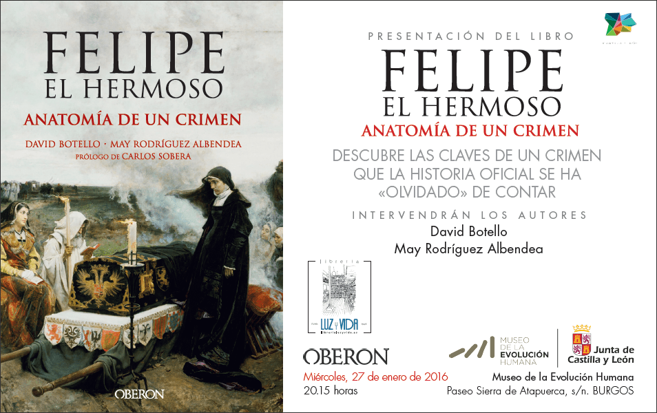 El 28 de enero presentamos Felipe el Hermoso. Anatomía de un crimen en la Librería Oletum de Valladolid. Europa Press dio la noticia y el anuncio de la presentación apareció en un montón de medios castellano-leoneses. Este es el enlace de El Periódico (David Botello y May Rodríguez presentan este jueves en Valladolid ‘Felipe elSigue leyendo «La presentación de Felipe en Valladolid»