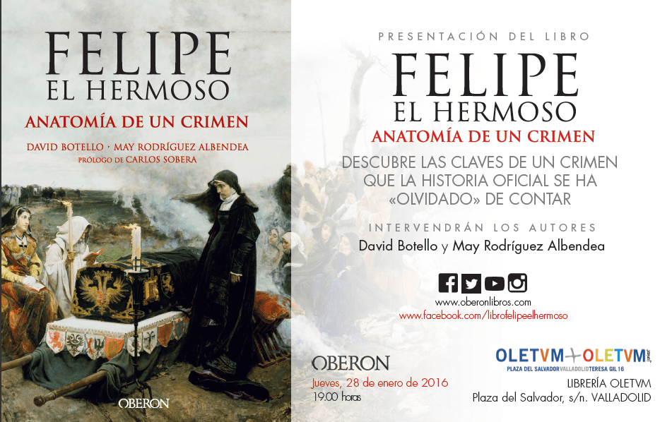 El jueves 28 de enero, estaremos presentando Felipe el Hermoso. Anatomía de un crimen en Valladolid. La cita es a las 19:00, en la Librería Oletvm, Plaza del Salvador, s/n. Allí nos vemos!